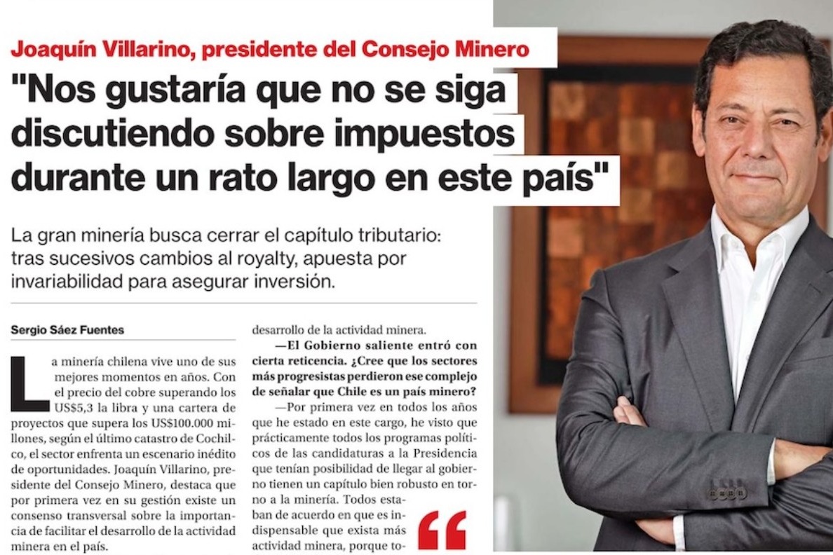 En el reportaje elaborado por la Revista Minería y Energía, Joaquín Villarino analizó los desafíos del sector.